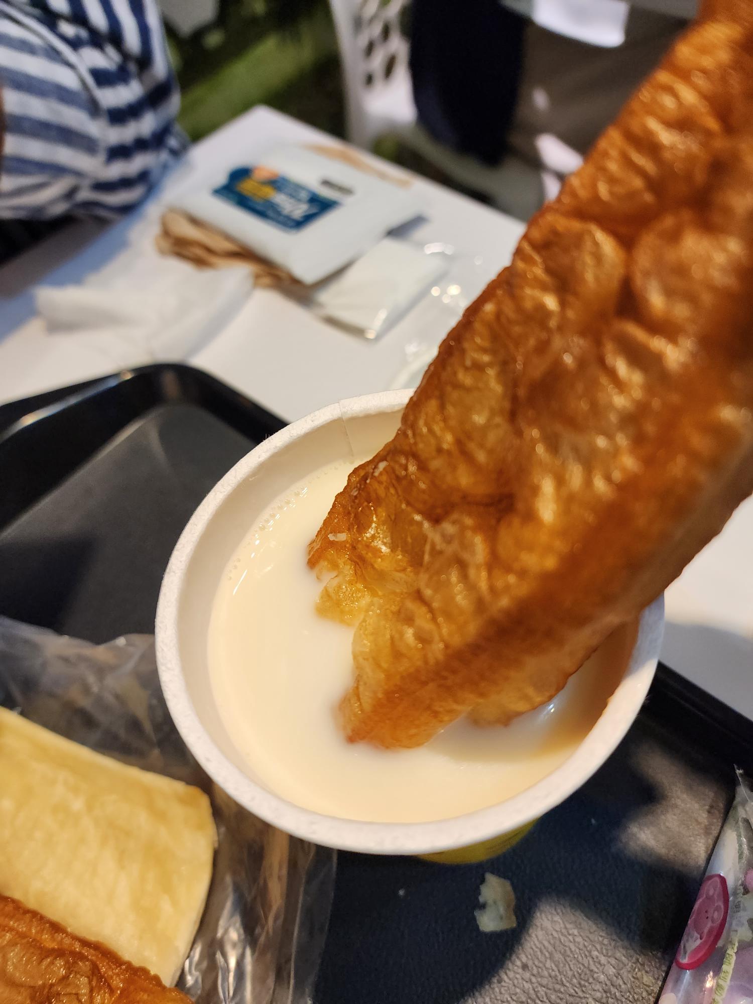 또우장은 설탕을 넣은 두유 (주문할 때 설탕을 빼 달라고 할 수 있음) 그리고 요우티에는 우리나라로 치면 튀김 꽈배기 쯤이라 보면 딱이다.