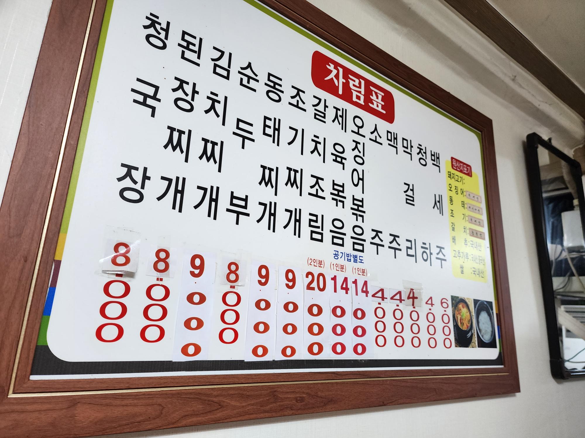 아내와 난 메뉴판을 형식적(?)으로 스캔하고 바로 주문에 들어갔다. 사실 이곳을 처음 방문하는 사람은 보통 이 집의 시그니쳐인 청국장과 제육을 시키는 것이 보통인 것 같아 다른 선택에 대한 고민이 없었다.