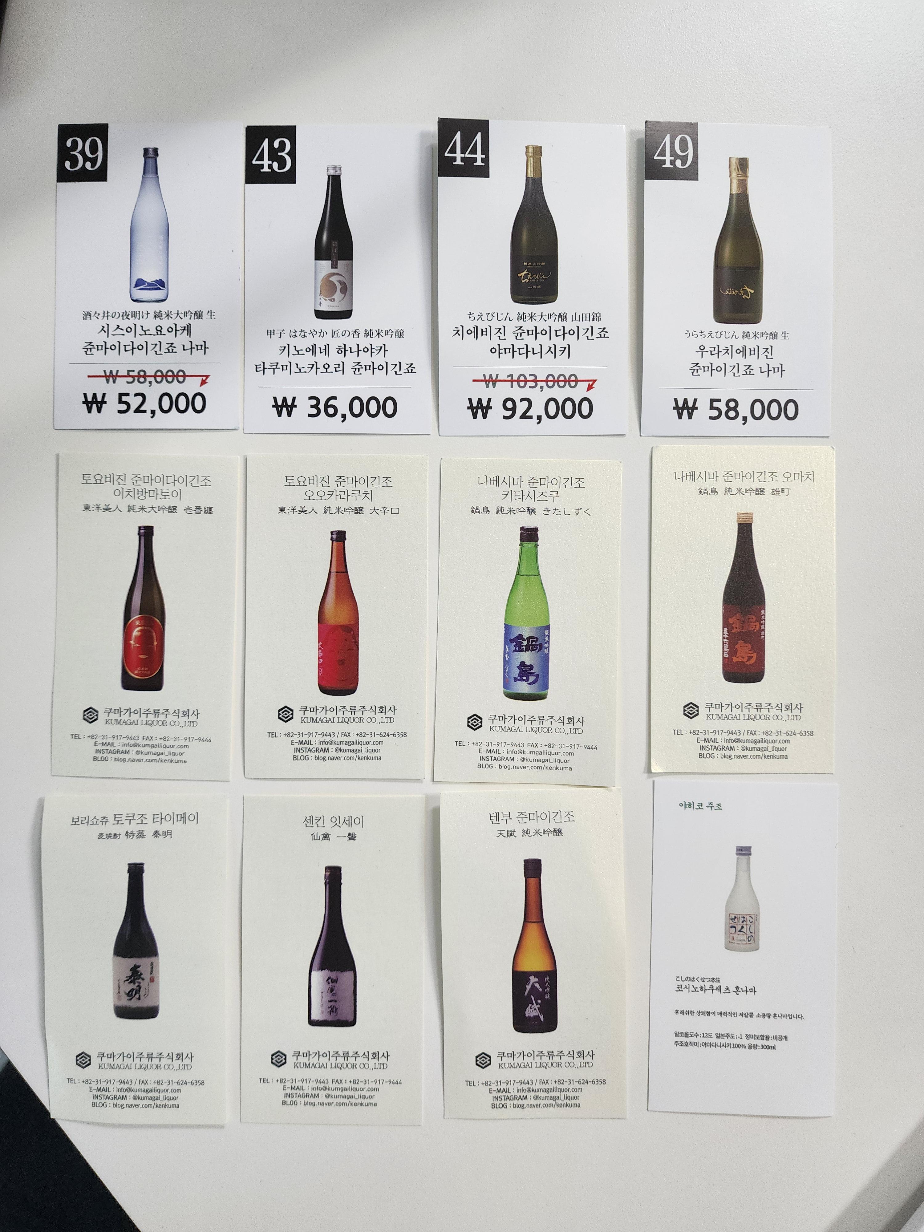 키노에네를 비롯해서 사진을 찍지 않고 카드만 받아 온 것도 제법 되고, 정확히는 세보지 않았지만 대략 총 40 여 종 이상의 사케와 쇼추를 마신 것 같다. 입장해서 5시 45분 정도까지 먹었으니... 훗!