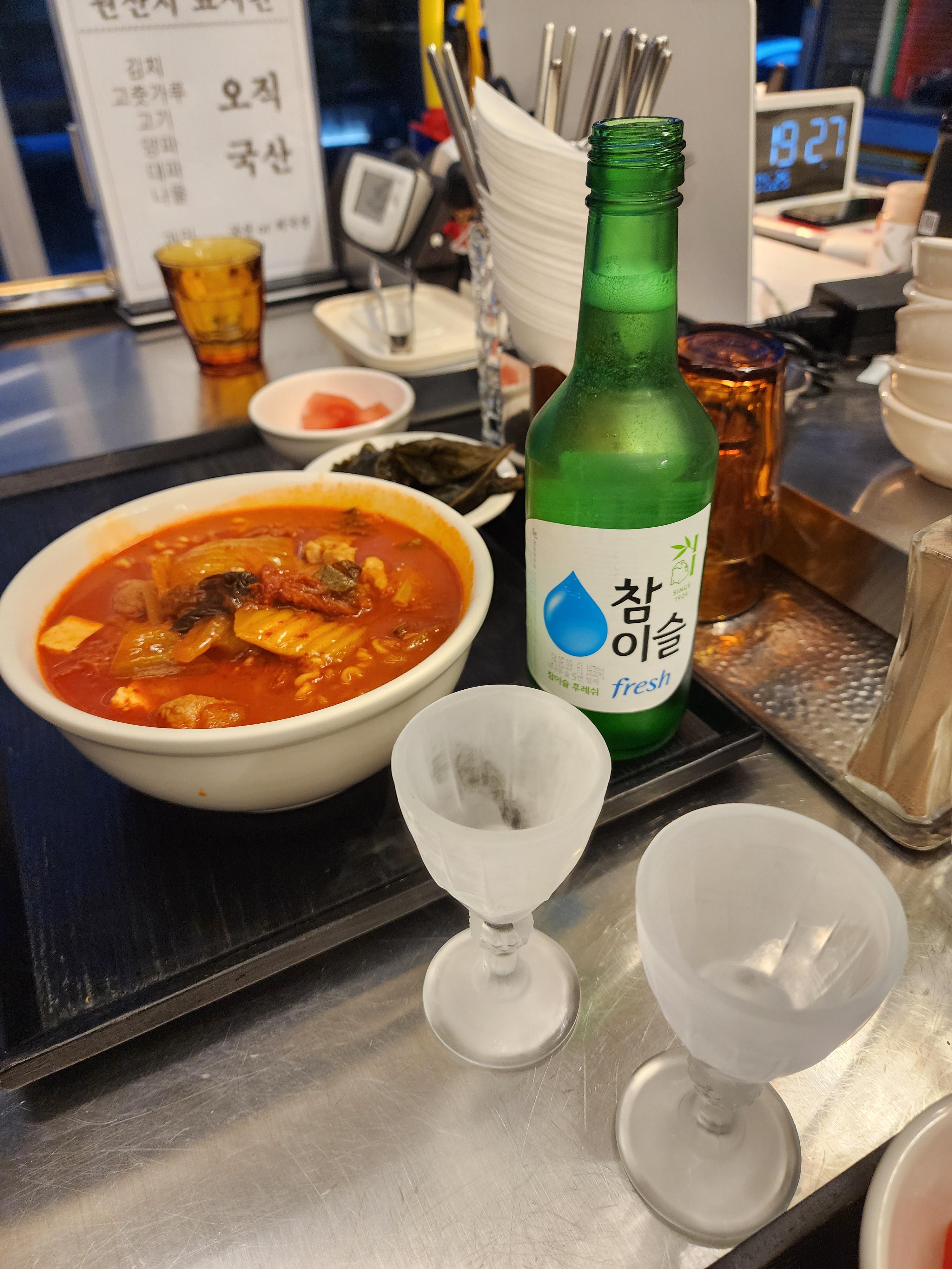 고급진 담금주와 김치찌개라니... 좋구나!