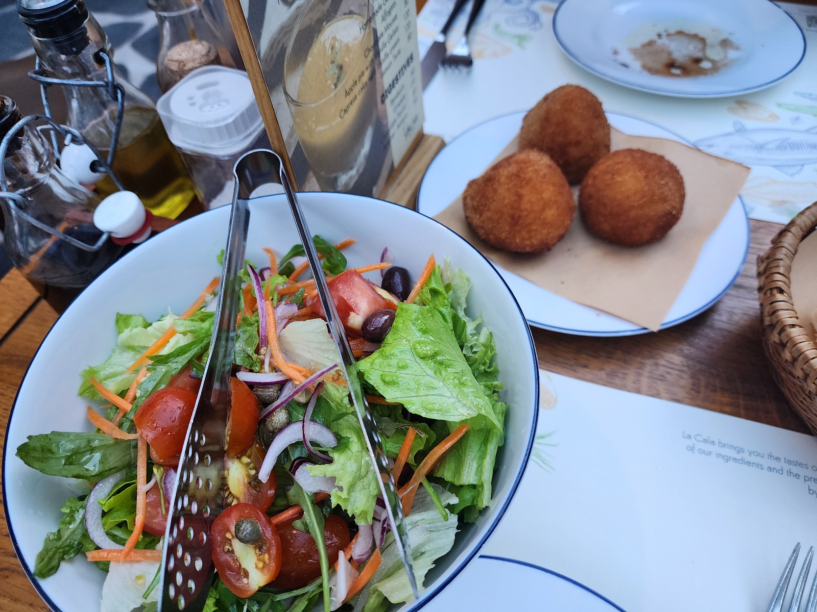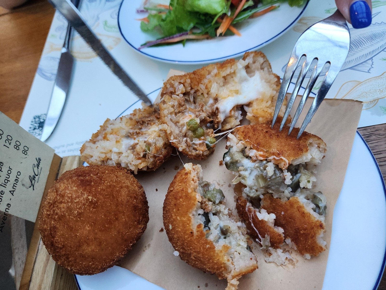 기본 샐러드, 그리고 아란치니...