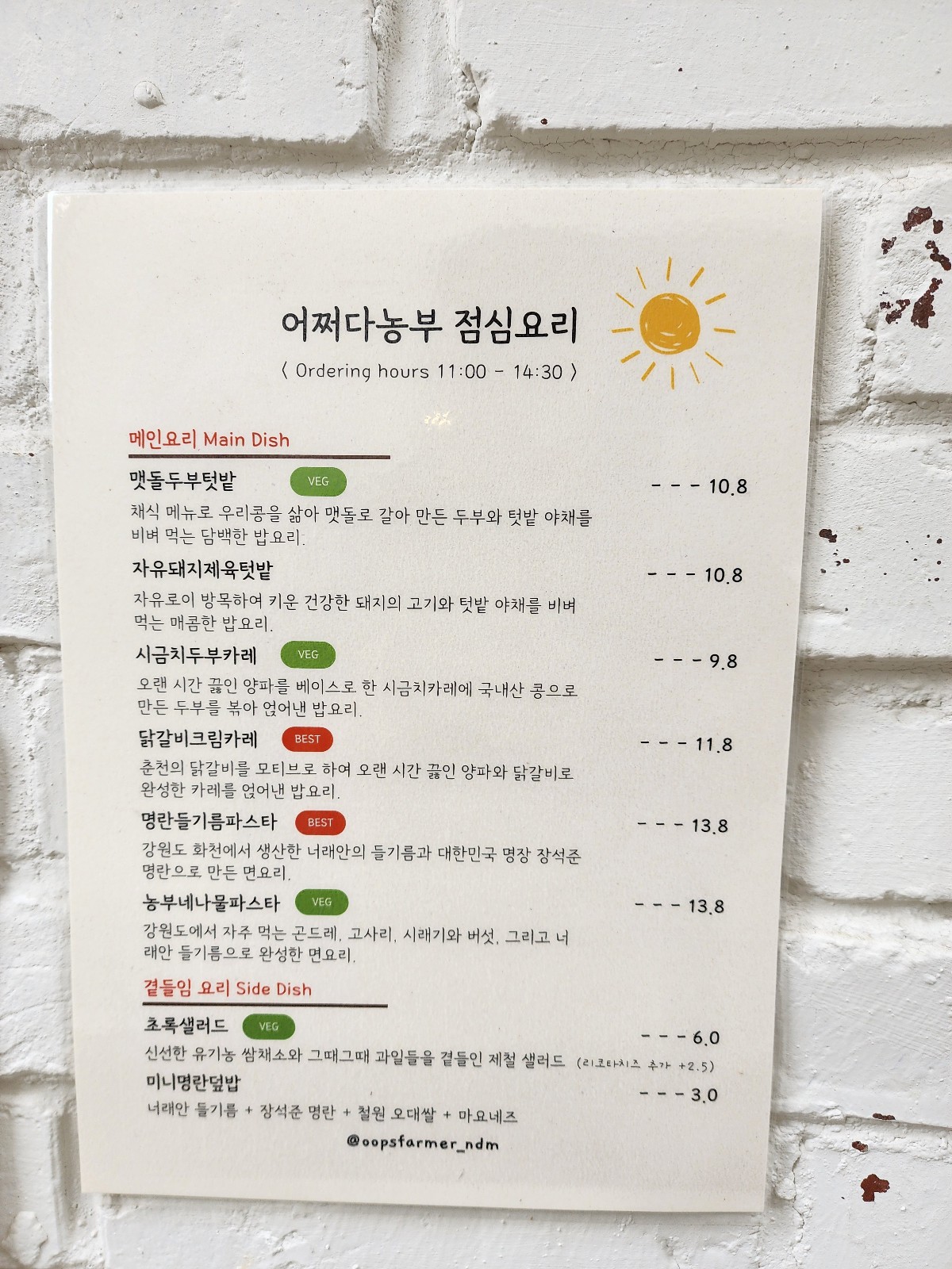 물가나 건강한 재료를 쓰다는 가게의 철학을 보면 적정한지도 모르겠다. 뭐... 내 월급만 오르지 않는 요즘이라 한탄이 나올 뿐!