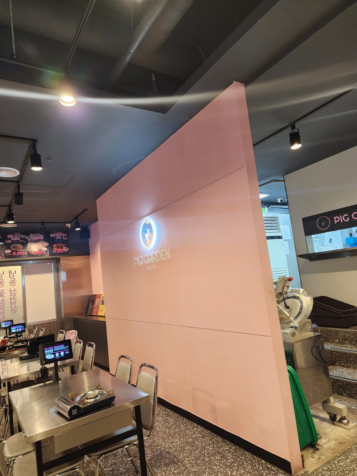 핑크가 일종의 여성 친화적인 색이라는 이미지를 연결해서 깔끔하고 깨끗하고 심지어 아늑한 고깃집의 분위기를 만들려고 했던 노력이 엿보인다. 일단, 사장님의 콘셉트차별화의 노력은 성공이다!