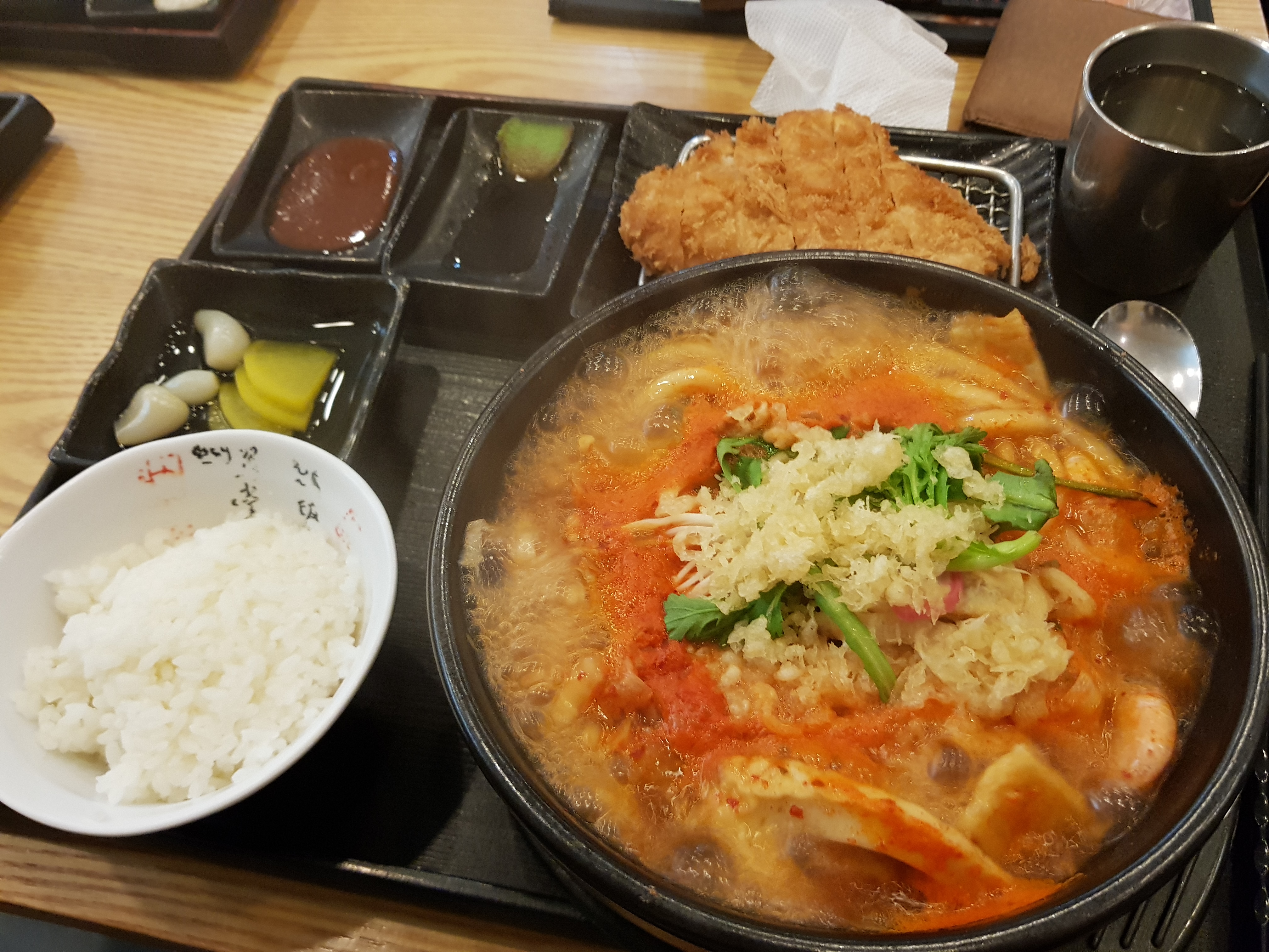 아쉬웠던 것 중 하나는 돈가스가 먹고 싶었던 터라 미니 돈가스를 시켰는데, 적당하지만 좀 바삭함은 다소 모자랐다. 바로 튀겨내서 주면 좋겠지만 바쁜 점심시간이라 그렇게 하지는 못하는 것 같다.